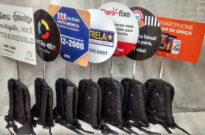01 Mochila + 01 Haste + 02 Mídias em PS Adesivadas